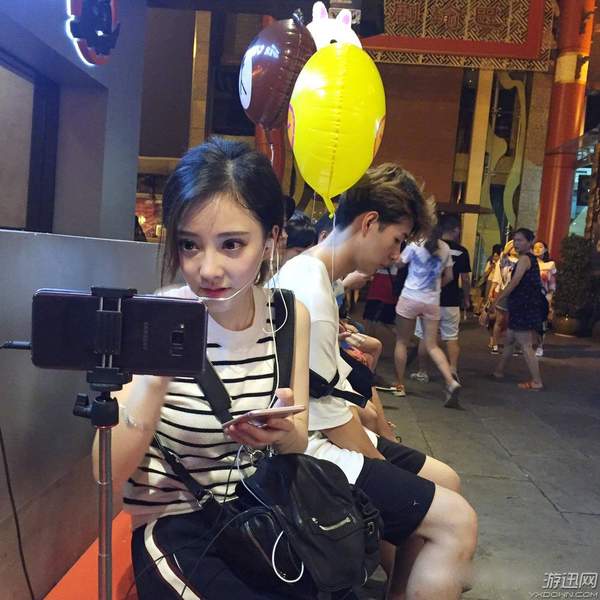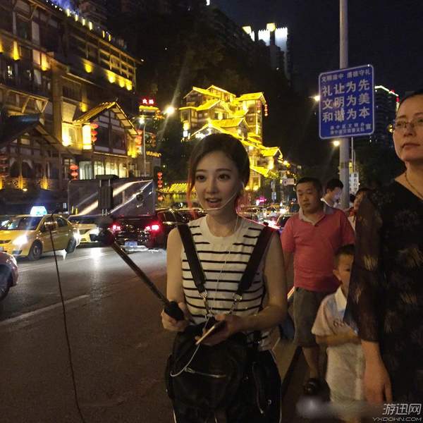 7月18日晚,LOL美女主播冯提莫来到了山城重庆的洪崖洞进行户外直播,粉丝们纷纷前来围观合照。照片中,冯提莫清纯水嫩吸睛,引粉丝合影。
