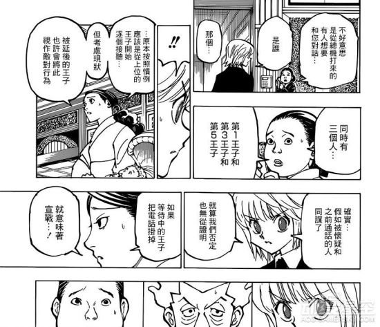 《全职猎人》365话情报公开,在上一话中,酷拉皮卡要面对三位王子打过来电话要先接哪位的难题,同时还有大王子新派来的警卫在门外敲门。新闻详情>>>