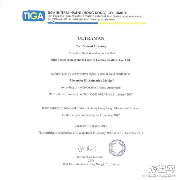 中国片方出示的来自UM公司代理机构TIGA的授权书——