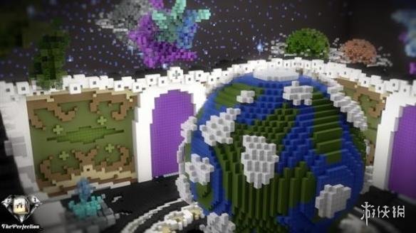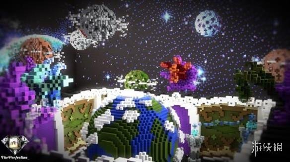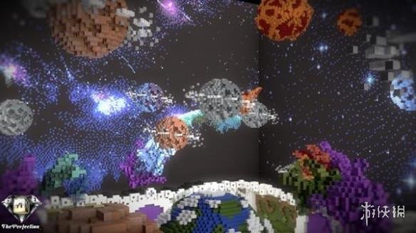 这部模型中,中心正是我们生存的地球,周围是一些颇具特色的行星、小行星、恒星以及星云,共同构建出了一个方块化的微缩银河系。