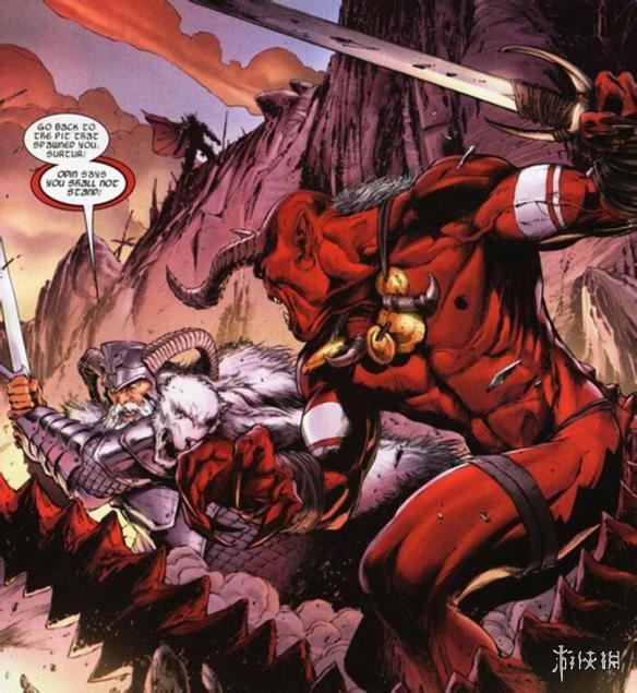 在漫画中,火魔巨人Surtur身高三百三十多米,作为阿斯加德所惧怕的巨人,Surtur比冰霜巨人更厉害,Surtur的武器为巨大的黄昏之剑,又称毁灭之剑,这把剑可以抗衡奥丁,奥丁发挥全力Surtur都能抵抗。而这次,死亡女神海拉释放出火魔巨人,他将作为绿巨人的对手,而雷神要解决的自然是海拉。
