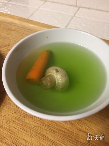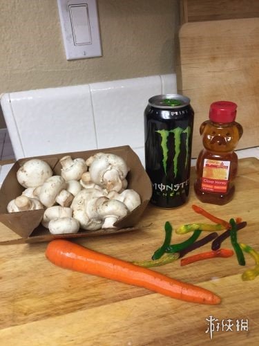 Loryn Stone品尝后:因为有怪物饮料打底,所以一开始尝味一点还是感觉不错的,不过喝一大口后就有一股“怪物血”的味道冲上来了,实在是感觉恶心……再来尝一尝蜜汁蘑菇,嗯没什么特别的,没放盐这就是一股甜蘑菇的味道。