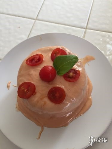 制作过程:就算都是番茄,不同的产品也会带来不同的效果,所以先把番茄酱浇在蛋糕上,然后在上面覆上糖霜和番茄片,最后放进烤炉里烹制。做出来后这样子还是挺讨喜的。