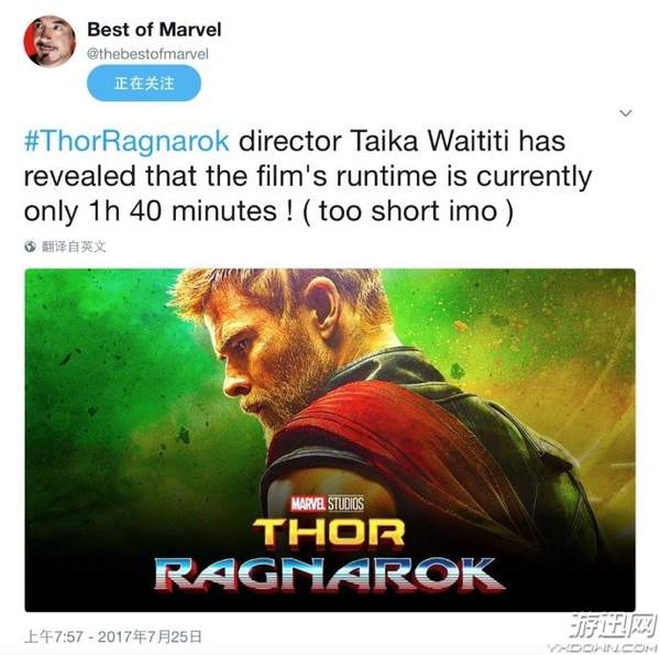 《雷神3:诸神黄昏》将会于11月3日在北美上映。