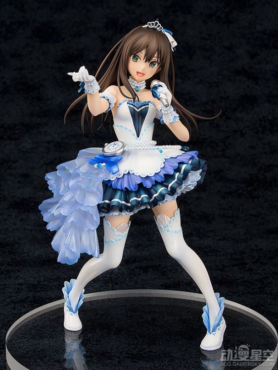 在《偶像大师灰姑娘女孩》动画及手游中,身穿洁白演出服的黑长直少女涉谷凛成功征服许多观众的心,近日一款由Aquamarine推出的手办再现了这华美的一幕。