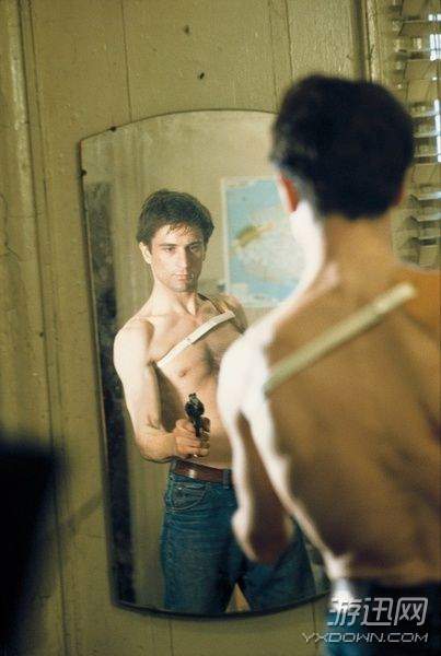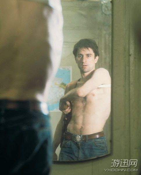 《出租车司机》里经典的片段,这段对着镜子的经典片段,原本只有一句台词,硬是被演员临场发挥到了极致,导演不喊卡就继续表演下去,感谢导演的茅舍顿开,更感谢罗伯特德尼罗的放飞自我。