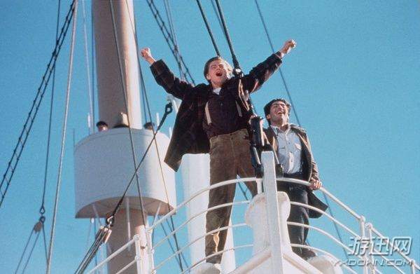 最经典的《泰坦尼克号》中那个站在船头大喊大叫的片段当然也是小李子的即兴发挥。