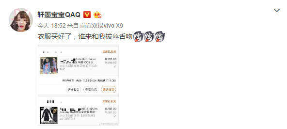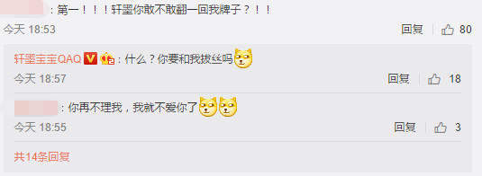 近日,他居然发出了这样一条微博,衣服买好了,谁来和我拔丝舌吻。不少粉丝在看到后,也是有求必应,纷纷坐等轩墨宝宝的翻牌。