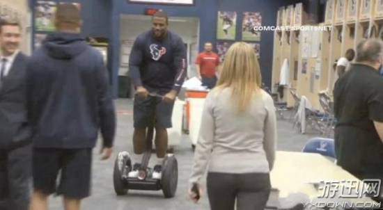 NFL跑锋Arian Foster为了感谢队友在赛季中对自己的帮助,买了10辆赛格威电动代步车送队友,与此同时,跑锋Arian Foster自己也爱上了赛格威,形影不离似乎站上去就再也不愿意下来了。