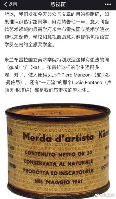 前段时间“葛宇路”那个葛宇路不是因为在国旗杆上放假丁丁被学校处分了么,有意大利美术学院表示将提供全额奖学金欢迎葛宇路去深造。