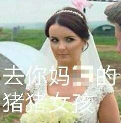 新娘一副开始怀疑猪生的表情,仿佛在问新郎:你是猪吗?