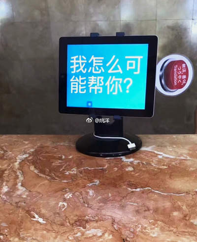就算是我这种爱岗敬业的好员工,偶尔都有想摸鱼罢工的时候,何况机器呢?美国某酒店前台整了台翻译机,输入“How can I help you? ”后得到了这样的答复。