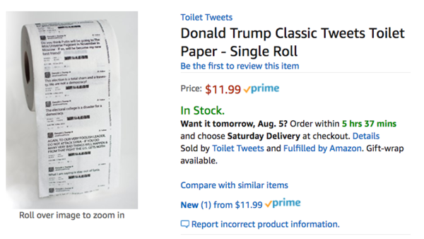 一卷11.99美元。比印川普头像的手纸贵点儿。