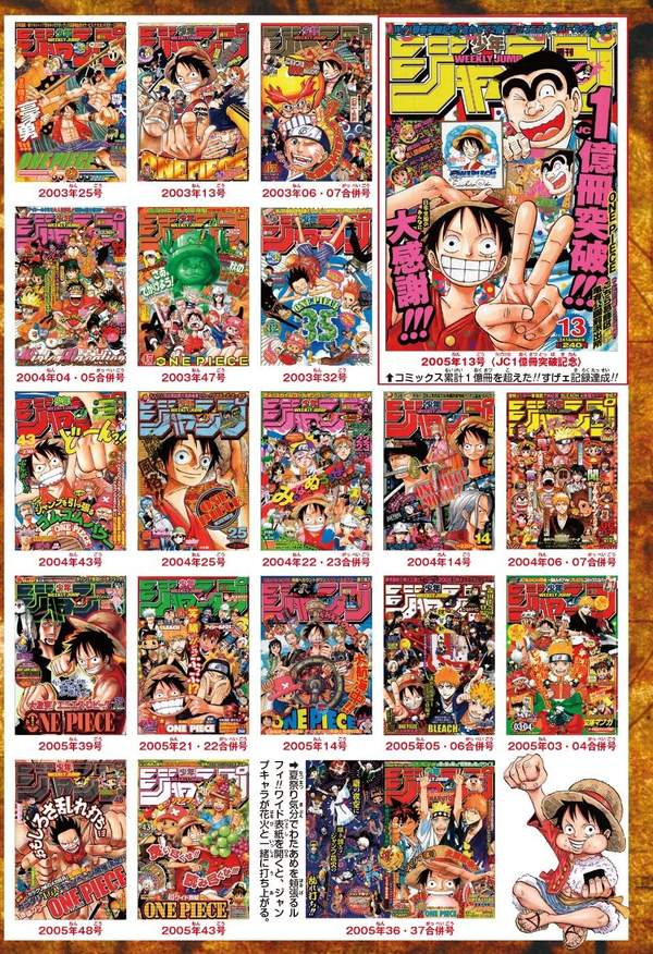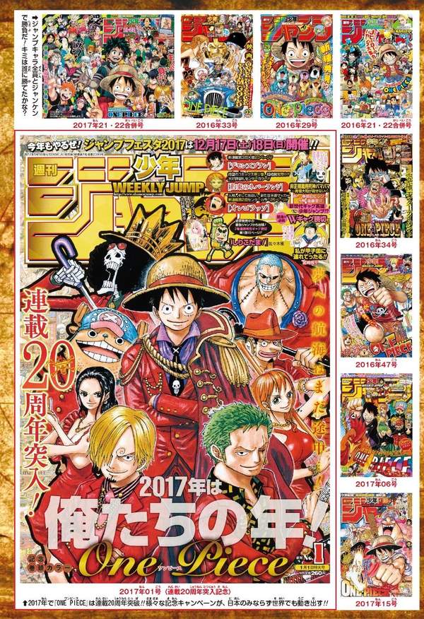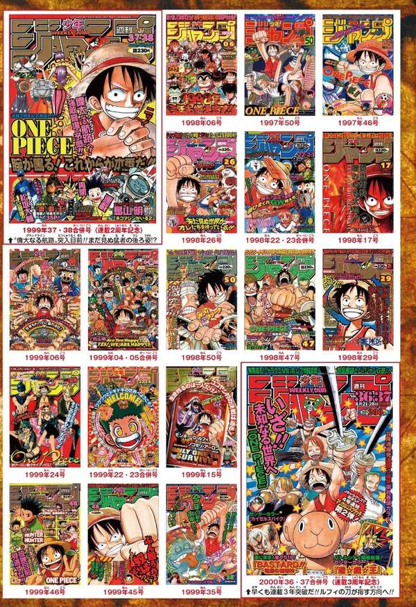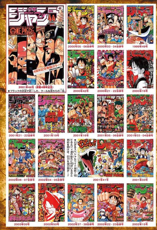 今年是尾田荣一郎《海贼王》漫画连载20周年,官方也推出了各种企划活动,其中一项就是推出《海贼王》漫画连载以来所有刊登了《海贼王》的《少年JUMP》封面大合集,从1997年一直到现在,看着路飞他们的团队一路走来不断壮大,这种“有你陪伴”得感觉真是非常的好。