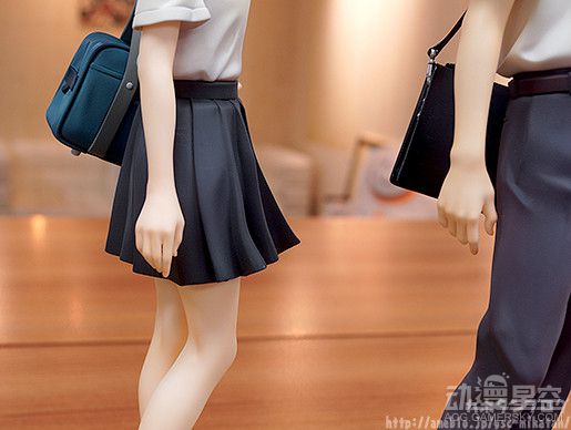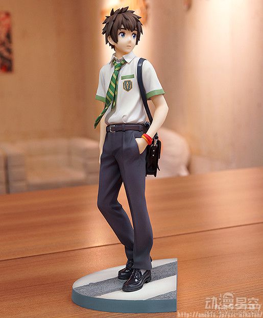本款手办还原了泷与三叶在《你的名字。》海报上的姿势,两人脚下的台座分别对应了他们的出身地(泷的城市街道、三叶的乡下草坪),可见细节方面的巧妙。而当把两只手办按照不同方式摆列后,还可以呈现出泷与三叶深情对视的场景,爱意满满。此外,三叶的头绳、领结和制服褶裙,泷的领带和挎包都凝聚着制作者的细致用心,极具清新的美感。