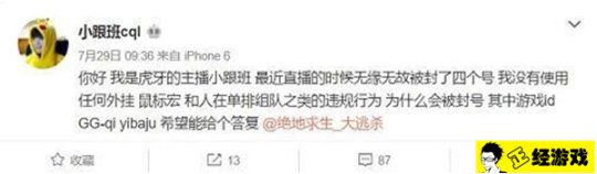 不过在一波疯狂吃鸡之后,主播“小跟班”的账号居然被官方封禁了!事实上在这次疯狂吃鸡前,这位主播已经因为吃鸡水准过于高超而被官方封号四次。小弟估摸着,八成是因为这位主播实力太强,被官方当成外挂了……