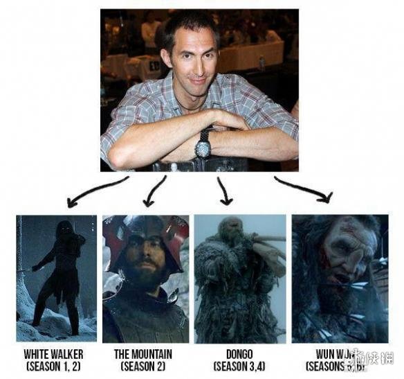 威尔士演员伊安•怀特在第一季中扮演的角色是异鬼,第二季时短暂“代班”饰演魔山,第三季他又跑去演了巨人Dongo,到了第五季、第六季他变成了巨人旺旺的扮演者。