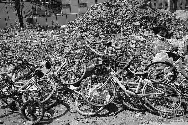 “工地里被人扔了上百辆车子,横七竖八倒在那,风吹日晒的,没几天就不成样子了。看着真让人心疼,好好的东西被人糟践了,真不像话。”昨天,黄师傅拨打了本报新闻热线,希望媒体曝光一下这种不文明行为。