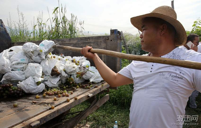 11日下午4时许,西安鄠邑区农业局、市场监督管理局和公安局组成的联合执法组的执法人员,来到秦渡镇禹王庙村的两块葡萄园,将园中的约2万斤葡萄全部摘下,拉到附近进行石灰覆盖、深埋处理。