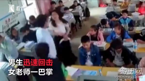 男生也不甘示弱,立马回击了老师一个耳光。