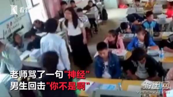 女老师训完话之后,转身说了一句“神经”!男生立马顶嘴“你不是啊”