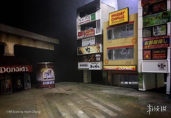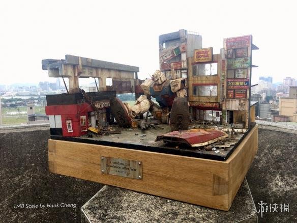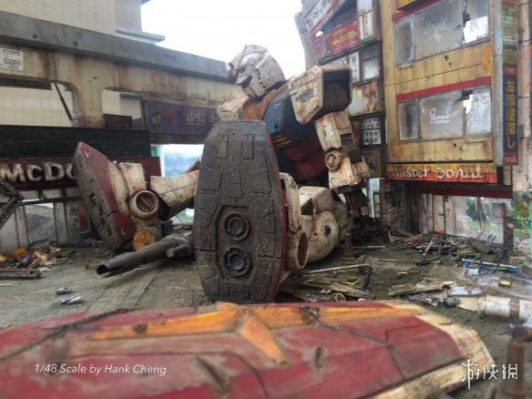 在这个场景中,初代高达RX-78倒在东京街头的废墟上,无论是高达本体还是身后背景都是相当的凄凉。这位推特名为Hank Cheng的模型爱好者也是位大触,这里的高达模型有着浓重的战后沧桑感,和周围的残垣断壁完美的结合到一起,连细节都做的非常精致。