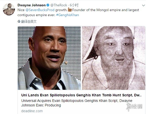据外媒Deadline报道,道恩·强森将以制片人的身份拍摄一部讲述“寻找成吉思汗陵墓”故事的电影。