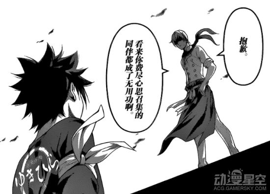 接下来的发展似乎可以预料到了——略过其余两盘的试吃过程,司瑛士直接对台下的幸平创真发起挑衅——“抱歉,你费尽心思召集来的同伴看来都成了无用功”。
