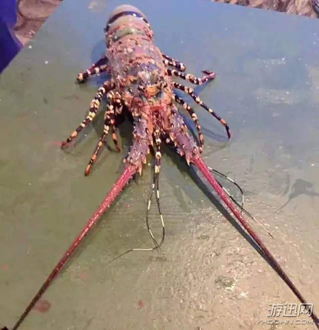 8月11日上午,渔民老郭在舟山附近海域下网,竟意外捞上来了一只大龙虾。经鉴定,这只大虾是中华锦绣龙虾,是世界名贵的经济虾类,中华锦绣龙虾身长最长可达55~60厘米,老郭捕到的中华锦绣龙虾个头很大,比较少见。