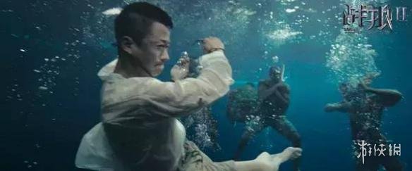 电影中,让很多观众惊艳的是一段长达6分钟,包括了水下动作戏的一镜到底,在拍摄前被认为是不可能完成的任务,因为之前从来没有人在水下打三分钟。正是因为有挑战性,才让吴京更想突破自己。拍摄时不论是演员还是工作人员都没有呼吸器,光是防止意外发生的救生员就5个人。而这场高难度水下动作戏,请来了《加勒比海盗》的水下戏摄影师掌镜。拍摄时,因为不戴眼镜在水中什么都看不见,一切都只能凭感觉来。这场动作戏套招套了半个多月,水下彩排了4天,吴京每天在水下泡着超过10小时,十分辛苦。