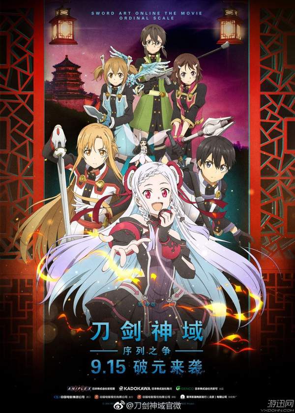 《刀剑神域:序列之争》剧场版动画电影国内正式定档9月15日,今天(8月24日),官方发布了定档海报,一股浓郁的中国风来袭。在这张海报上有着中国风格浓郁的红色雕花木门,以及独特背景,给人一种相当喜庆的感觉。9月15日,一起来影院观看吧。