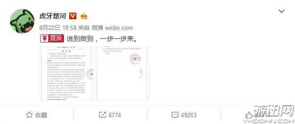 8月22日,虎牙楚河:“说到做到,一步一步来。”