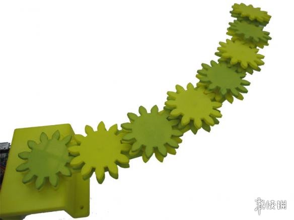 拼图大师戴维特(Oskar van Deventer)给自己最近发明的东西起了个名字叫作 " 齿轮鞭子(Geared Whiplash)"。这个类似于溜溜球的传动装置由一串相互连接的齿轮元件组成,元件可以紧紧盘绕起来,甩一下就变成一条长链。完全甩开之后,它又会自动卷起来,不断重复。