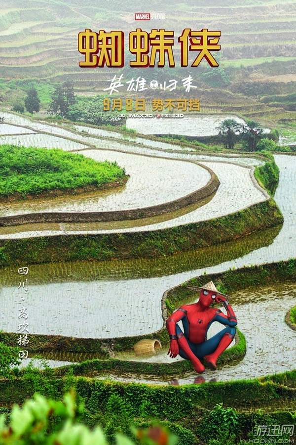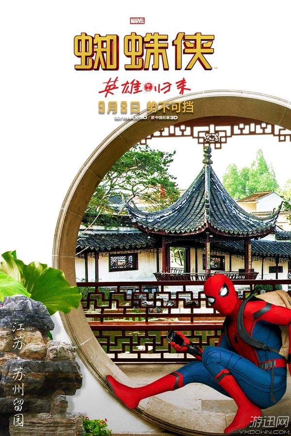 漫威科幻大片《蜘蛛侠:归来》将于9月8日在中国内地正式上映,今天片方发布了40张“蜘蛛侠眼里的美丽中国”海报,海报的故事就是小虫在中国各地旅行,欣赏风景游历风土人情,还“陷入”了可爱熊猫堆当中。看看他有没有在你的家乡附近出没吧。