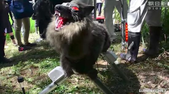 这只“机器人怪兽”造型是一只狼,但是比真狼更恐怖。只见它面目狰狞,血口大开,眼睛闪烁着红光,再加上歇斯底里的狼嚎,惊悚至极。据了解,当野生动物接近庄稼地,装有红外感应器的机器人“超极怪兽狼”会闪烁红色LED“眼睛”,并发出48种包括人声和狼嚎在内的声音,以驱赶动物并保护农作物。