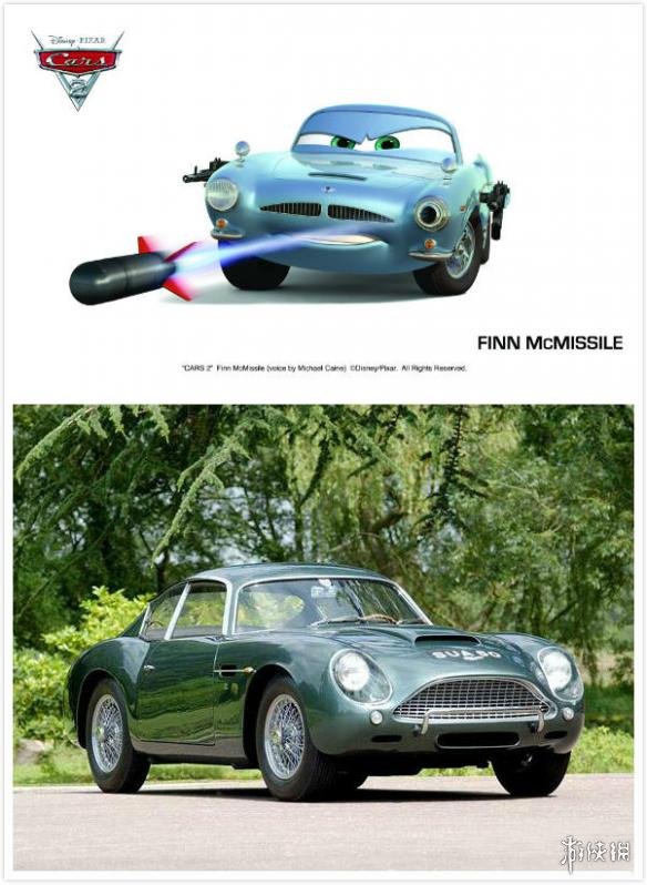 麦克飞弹是第二部惊艳登场的全能型间谍车,小型尾翼的灵感来源于英国1958年的阿斯顿·马丁1960DB4。该款优雅而刚劲的车型在1958年的首次面世,并宣告了阿斯顿马丁公司全盛期的开始。麦克飞弹其实在第一部中也有客串,只是后来被剪掉了,结果第二部很快上位成为戏份很重的王牌特工,在与劣制车的对抗中彰显了英国名谍007的智慧与勇气。车身机关无数、能潜水、射击、飞身吊钢丝,甚至还能给板牙灌输励志的心灵鸡汤。更甚的是,为其献声的还是蝙蝠侠的管家迈克尔.凯恩,老戏骨的演绎与麦克的两撇小胡子真是相得益彰。《赛车总动员3》中,他作为一代偶像出现在了招贴海报中。