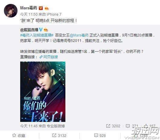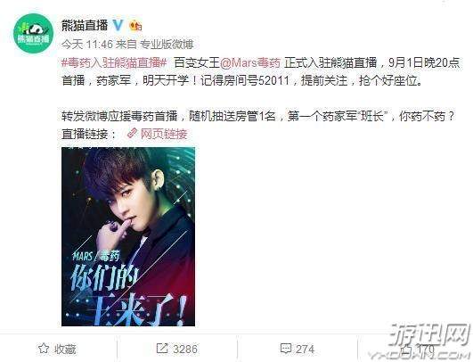 熊猫直播在和尹素婉彻底闹掰之后,一姐的位置长期处于悬空状态,今天官微证实引进人气女主播Mars毒药,看这配文大概也是认准了主播的一姐之位。