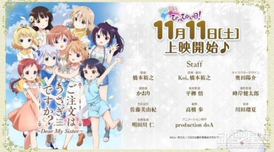 预定于今年11月11日上映的《请问您今天要来点兔子吗?》剧场版《Dear Sister》现已发布了第一弹预告视频,智乃、心爱、理世等熟悉的萌少女再度治愈大家。