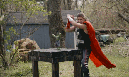片尾的武器测试环节中,我们可以看到,这两把剑并非只是花架子,即使不能削铁如泥,但威力已经十分巨大,可怜的“绿巨人”这次被“雷神”瞬间砍掉了头颅。
