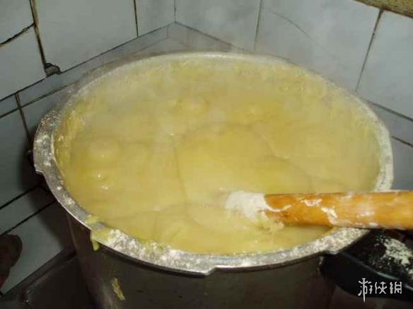 搅团,搅团是西北地区一特色吃食,根据主要用料不同,分为荞面搅团、玉米搅团和洋芋搅团,最普通的吃法是趁热盛一团入碗,加入酸汤,夹一筷子油泼辣子,顺汤搅匀,然后从碗边开始,夹起一块,汤里一撩送入口中。那酸汤种类可以很多,地道的要算萝卜缨渍成的那种,萝卜缨本算不得菜,烧、炒、煸都进不了口,可渍成酸菜,特别是配搅团吃,增色,爽口。