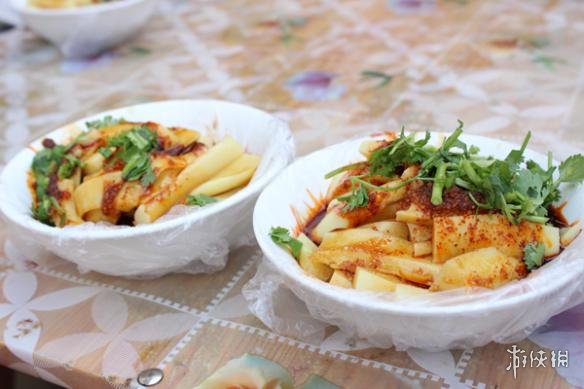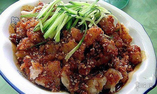 呱呱,天水一带的一种特殊食品。无论是寒风骤起的严冬,还是烈日当头的盛夏,总有那紫红色的呱呱在摊点出售,食客往来不断,生意格外红火。呱呱的吃法也比较独特,先将呱呱撕成小片,再配上辣子油、芝麻酱、食盐、醋、蒜泥等调料即可。