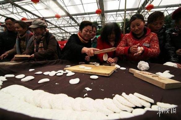印子粑,粑印用木制,每个粑印有1-3个空模,形状一般只有小茶杯口大。粑印里刻有反向的如马、牛、羊、鸡、龙、犬以及鸟雀、花、草等各种动植物图案,造型美观,栩栩如生。堆成的粑山,晶莹透亮,造型美观,堪称优秀的民间艺术品。