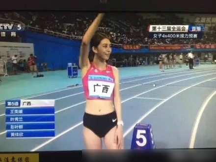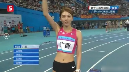 天津全运会,女子4*400米赛场,广西选手王美媛,肤白貌美大长腿,我新女神。