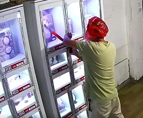 在湖北武昌,某位大哥深夜一连从自动售货机里盗走了3个充气娃娃。