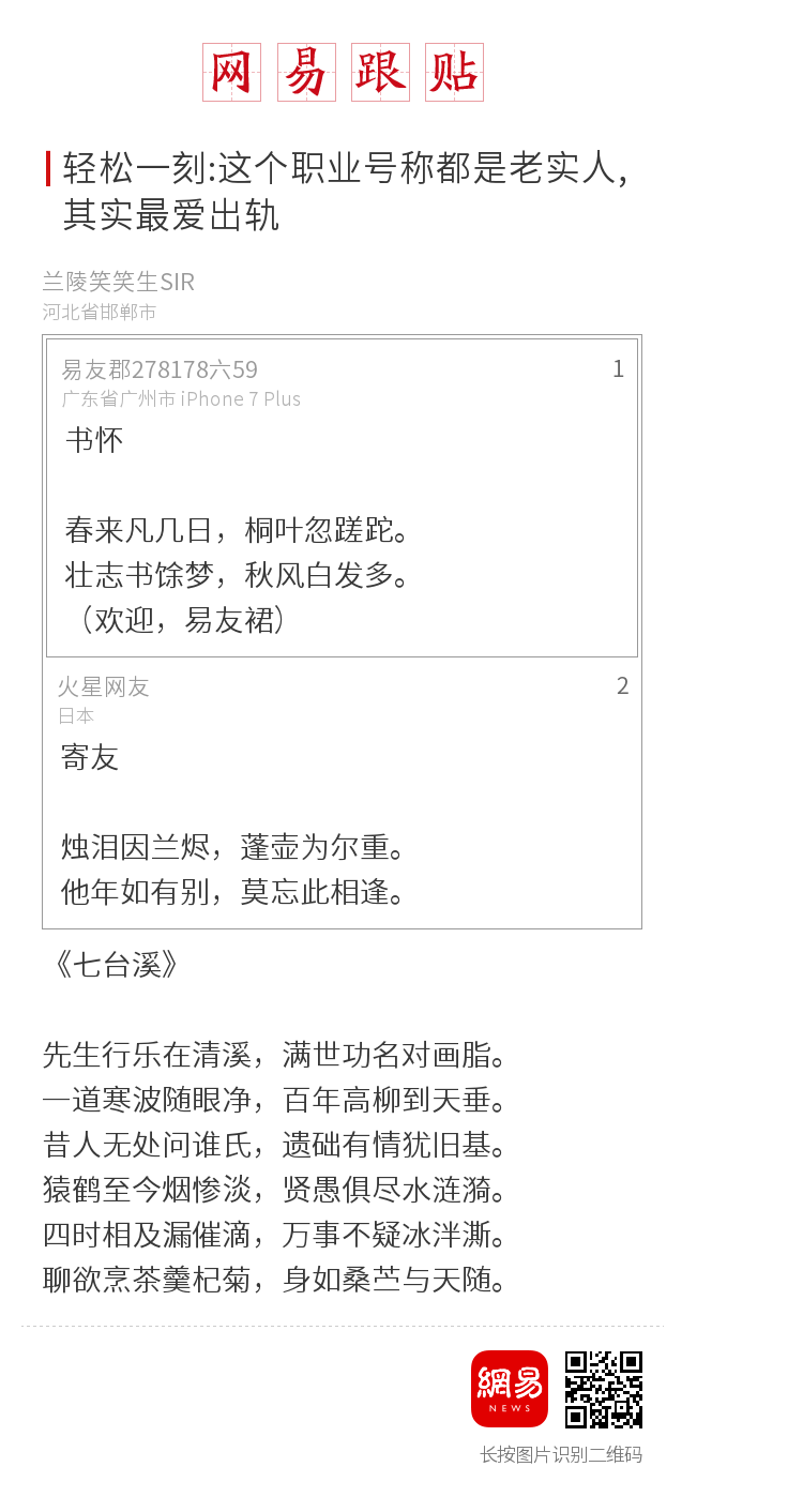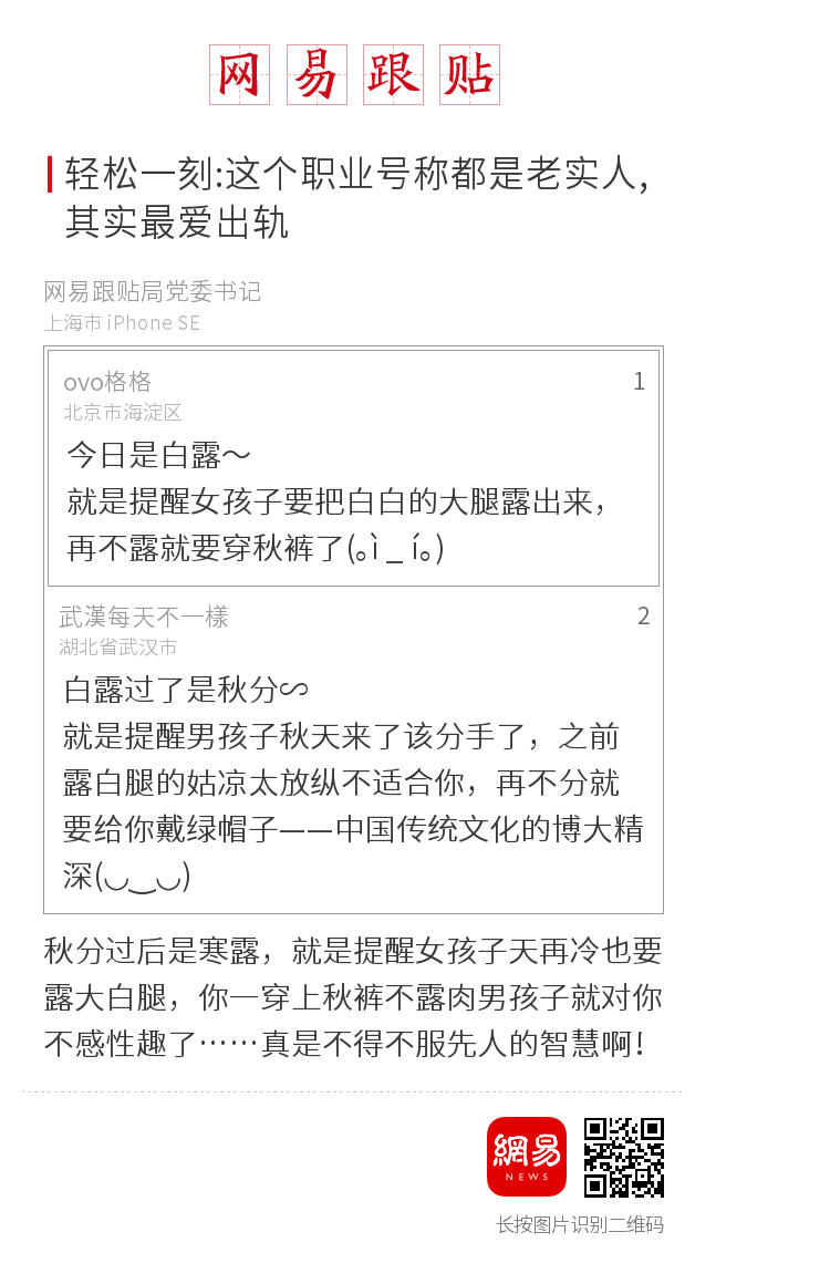 (所有栏目内容推荐均撷取自网友的智慧言辞,仅出于传递信息的目的,不代表网易官方声音。)