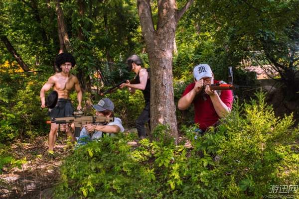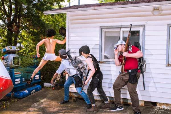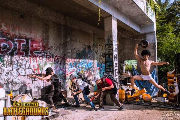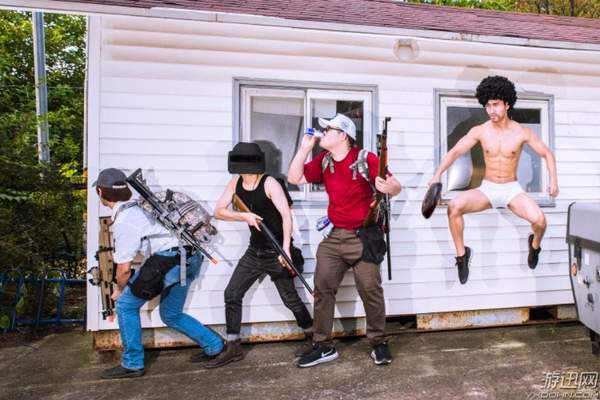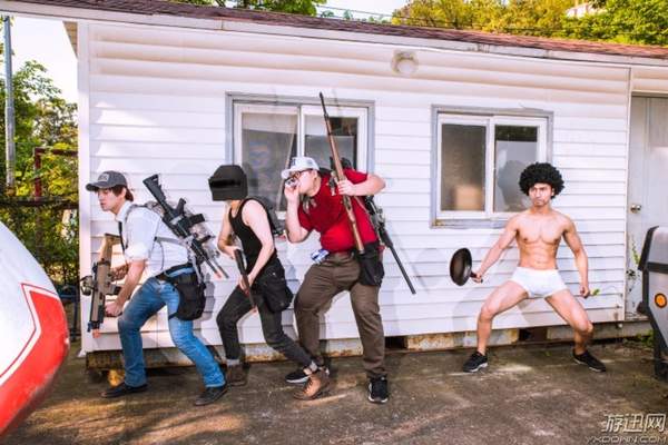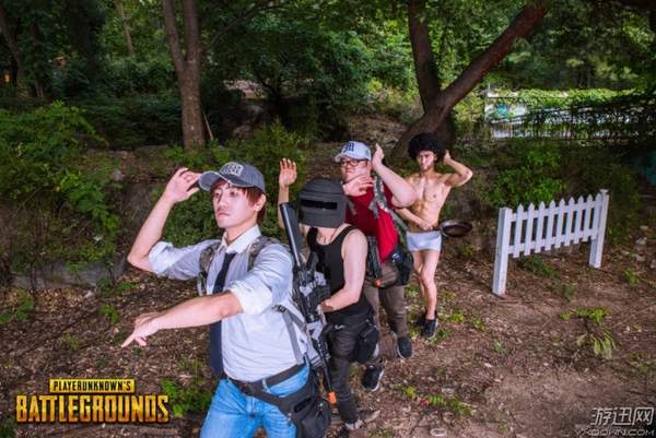 这些照片选址是在一个游乐场,某些场景还是很还原游戏的,好在《绝地求生》里的装扮都比较好找,都是贴近生活的服饰,或者什么也不穿就好,cos一共分为四组,一起来看一下。