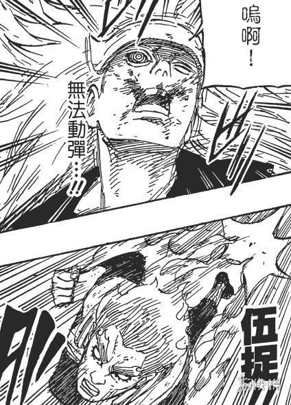八门凯的最后绝学,全身气势幻化为龙,高速冲向敌人的瞬间踹出生命中最后一脚,这一脚连空间都能扭曲,六道斑徒劳地伸出武器却无法阻止,已经拥有六道之力的他还是被这一脚夜凯踢碎了半边身体。