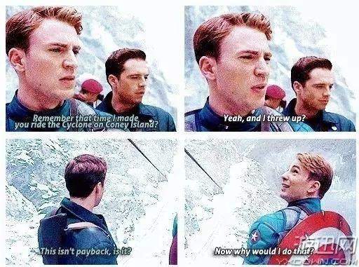 23、秃鹫飞机坠落的地方位于布鲁克林Coney岛的Cyclone过山车。美队1中Steve和Bucky要沿着缆绳滑降到火车上前,Bucky提到小时候他曾经逼着Steve坐这个过山车还让他坐吐了。
