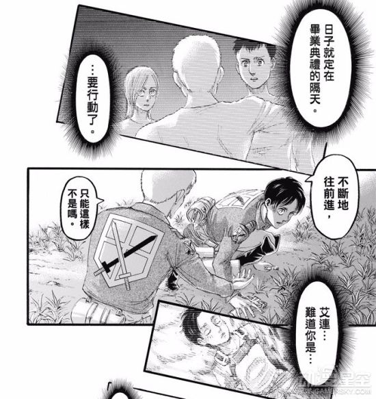 《进击的巨人》漫画97话汉化版来了,这次有几个重要的角色登场,其中一个应该是很久都没登场的人,另外战锤巨人的家族也登场了。这段时间漫画一直以莱纳的回忆来讲述马雷帝国这边的计划,墙内的事情完全没有提到,也是让大家心焦什么时候才能回到主线上来。这样看来应该是已经回归到主线上了,只是主角登场的情况让人没有想到。