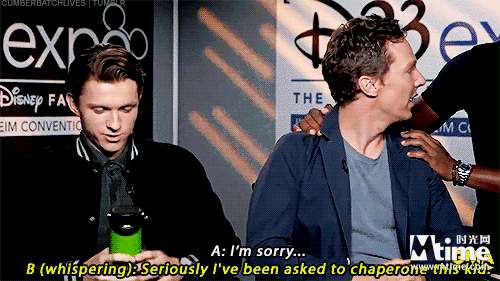 荷兰弟在接受媒体采访时,直接脱口而出《蜘蛛侠》还有两部续集,泄露了漫威的大秘密。(gif图中荷兰弟与“奇异博士”一起接受采访,本尼开调侃道“我是被公司派来给这孩子当监护人的”)